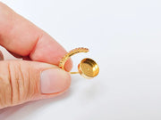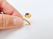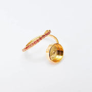 This adjustable ring bezel features a modern curved arm set with pink crystals and a 10mm round bezel cup—perfect for cabochons, resin, or custom designs.