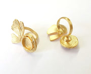 Leaf ring base blank setting cabochon base inlay ring Hammered mounting Adjustable Ring Bezel (13mm blank ) Gold Plated brass G25053