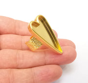 Heart Ring Blank Settings, Cabochon Mounting, Adjustable Gold Plated Resin Ring Base, Inlay Ring, Mosaic Epoxy Bezel Ring (34x15mm) G33795