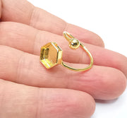 Ball Head Hexagonal Shiny Gold Ring Bezels Settings Resin Backs Cabochon Mounting Gold Plated Brass Adjustable Ring Base (10mm blank) G26661