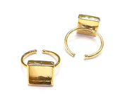 Shiny Gold Square Ring Bezels Ring Settings Resin Ring Backs Cabochon Mounting Gold Plated Brass Adjustable Ring Base (10mm blank) G27334