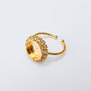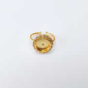 Ring Blank with Clear Crystals, Ring Bezel Setting Cabochon Resin Mounting Shiny Gold Plated Brass Adjustable Ring Base (10mm) G37454