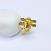 Flower Ring Blank, 10mm Bezel Adjustable Ring, 24K Gold Brass, G37590