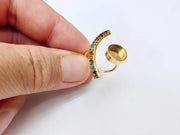 This adjustable ring bezel features a modern curved arm set with colorful crystals and a 10mm round bezel cup—perfect for cabochons, resin, or custom designs.
