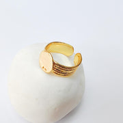 To preserve the brilliance of the 24k shiny gold plating, store your ring in a sealed container or zip-lock bag when not in use. Keep away from saltwater, perfume, soap, and detergents. If needed, gently wipe with a soft, dry cloth to restore shine.