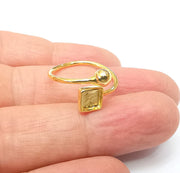 Gold Ring Setting, Cabochon Blank, Resin Bezel, Square Ring Mounting, Epoxy Frame Base, Adjustable Antique Gold Plated 6x6mm G35350
