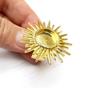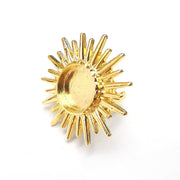 Sun Ring Blank Setting Textured Base Bezel inlay Ring Backs Glass Cabochon Mounting Adjustable Shiny Gold Plated (16mm bezel ) G22318