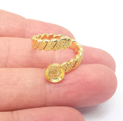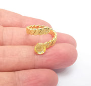 Twisted Ring Setting, Cabochon Blank, Resin Bezel, Ring Mounting, Epoxy Frame Base, Adjustable Shiny Gold Plated Brass 12mm G36010
