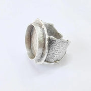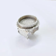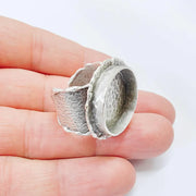 Antique Silver Adjustable Ring Base, 20mm Bezel, Wide Textured Band, G37857