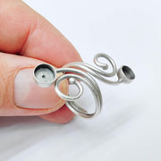 This adjustable swirl ring base features a 6mm round bezel setting, ideal for creating custom resin, cabochon, or crystal rings. Its artistic swirl design and antique silver plating give it an elegant, handcrafted look — perfect for boho and artisan-style jewelry.