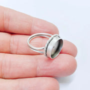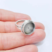 Antique Silver Adjustable Ring Base, 14mm Bezel, Textured Edge Setting, G37858
