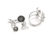 Flying Birds Ring Blank Ring Setting Ring Bezel Base Cabochon Mountings Adjustable Antique Silver Plated Brass (8mm and 6mm blanks) G27212