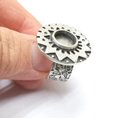Silver Ring Blank Setting, Cabochon Mounting, Adjustable Resin Ring Base Bezels, Antique Silver Inlay Ring Mosaic Ring Bezel (10mm) G33209
