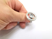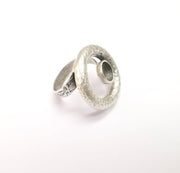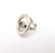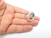 Circled Ring Setting, Cabochon Blank, Resin Bezel, Ring Mounting, Epoxy Frame, Adjustable Antique Silver Plated Brass 8mm G35237