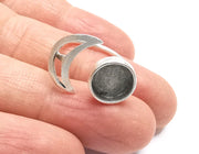 Crescent Moon Silver Ring Blank Base Bezel Settings Cabochon Base Mountings Adjustable, Antique Silver Plated Brass (10mm Blank) G27302
