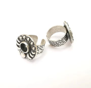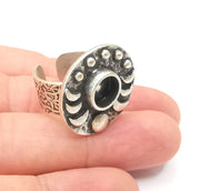 Crescent Moon Ring, The Phases of The Moon Ring Blank Setting, Cabochon Mounting, Adjustable Resin Base Bezels, Antique Silver (8mm) G28626