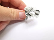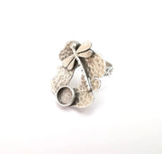 Dragonfly Ring Setting, Cabochon Blank, Resin Bezel, Round Ring Mounting, Epoxy Frame, Adjustable Antique Silver Plated Brass 8mm G35220