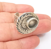 Fern Leaf Ring Blank Settings, Cabochon Mounting, Adjustable Resin Ring Base Bezel, Antique Silver Inlay Mosaic Ring Bezel (10mm) G28571