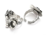 Flower Ball Hammered Disc Blank Silver Ring Setting Cabochon Mounting Adjustable Ring Base Bezel Antique Silver Plated Brass (8mm) G27556