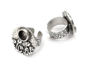 Flower Ring Setting , Tulip Ring, Hammered Round Ring Blank , Cabochon Mounting, Adjustable Resin Base Bezels, Antique Silver (8mm) G28635