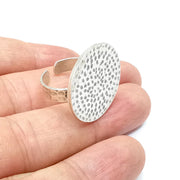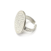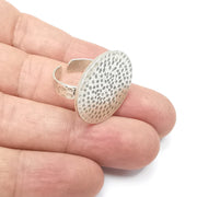Hammered Ring Round Setting Blank Cabochon Mounting Adjustable Base Bezel Antique Silver Plated (25mm) G34443