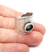 Textured Tube Ring Blank Setting, Cabochon Mounting, Adjustable Resin Ring Base Bezels, Antique Silver Plated (8mm round bezel) G34494