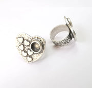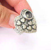 Heart Ring Blank Setting, Cabochon Mounting, Adjustable Resin Ring Base Bezels, Antique Silver Inlay Ring Mosaic Ring Bezel (8mm) G28595