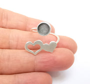 Heart Wrap Ring Setting, Cabochon Blank, Resin Bezel, inlay Mounting, Epoxy Frame Base, Adjustable Antique Silver Plated Brass 8mm G34952