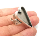 Heart Ring Blank Settings, Cabochon Mounting, Adjustable Antique Silver Resin Ring Base Bezel, Inlay Mosaic Epoxy (34x16mm) G33680