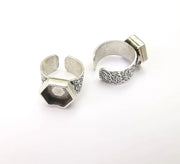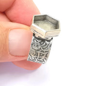Hexagon Antique Silver Ring Blank Setting, Cabochon Mounting, Adjustable Resin Ring Base Bezels, Inlay Ring Mosaic Ring Bezel (12mm) G28655