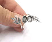 Leaf branch silver ring setting blank cabochon mounting adjustable ring base bezel Antique silver plated brass (9x6 mm) G26175