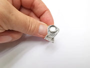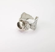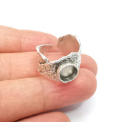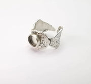 Leaf Ring Setting Blank Cabochon Mounting Adjustable Resin Ring Base Bezel Mosaic Ring, Antique Silver Plated Brass (8mm bezel) G33523
