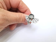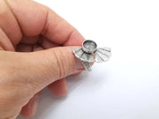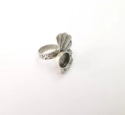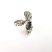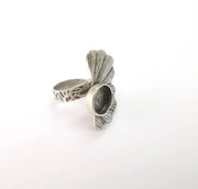 Leaf Ring Setting, Cabochon Blank, Resin Bezel, Round Ring Mounting, Epoxy Frame Base, Adjustable Antique Silver Plated Brass 10mm G35276