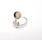 Cactus Ring Blank Setting, Cabochon Mounting, Adjustable Resin Ring Base Bezels, Antique Silver Plated (8mm) G33054
