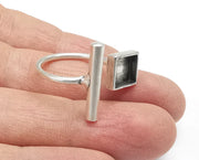 Ring Blanks Silver Rod Square Ring Setting Cabochon Mounting Adjustable Ring Base Bezel Antique Silver Plated Brass (8mm Blank) G27256