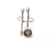 Bars Ring Blank Settings, Cabochon Mounting, Adjustable Antique Silver Resin Ring Base Bezel, Inlay Mosaic Cabochon (8mm) G34038