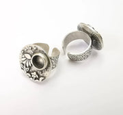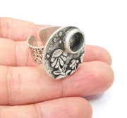 Flower Ring Blank Setting, Cabochon Mounting, Adjustable Resin Ring Base Bezels, Antique Silver Inlay Ring Mosaic Ring Bezel (8mm) G28579