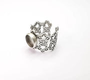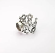 Silver Ring Blank Setting, Cabochon Mounting, Adjustable Resin Ring Base Bezels, Antique Silver Plated (10mm round bezel) G33526