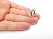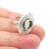 Silver Ring Setting Blank Cabochon Mounting Adjustable Resin Base Bezel Mosaic Ring, Antique Silver Plated Brass (8mm bezel) G33186