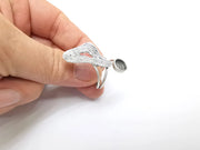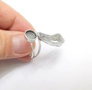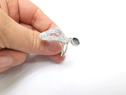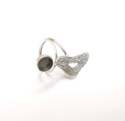 Silver Ring Setting, Cabochon Blank, Resin Bezel, Round Ring Mounting, Epoxy Frame Base, Adjustable Antique Silver Plated Brass 8mm G35247