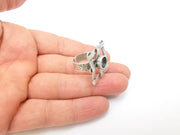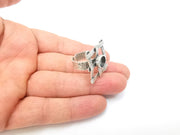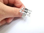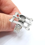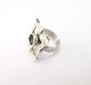 Silver Ring Setting, Cabochon Blank, Resin Bezel, Round Ring Mounting, Epoxy Frame Base, Adjustable Antique Silver Plated Brass 8mm G35278