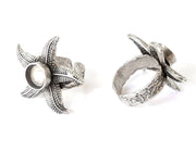 Starfish silver ring setting blank cabochon mounting Adjustable ring base bezel Antique Silver Plated Brass (8mm) G25839