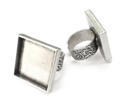Square Ring, Branch Ring Blank Setting, Cabochon Mounting, Adjustable Resin Base Bezels, Antique Silver Plated (25mm) G28662