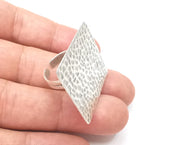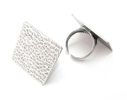 Square Hammered Ring Blanks Settings, Cabochon Mounting, Adjustable Ring Base Bezels, Antique Silver Plated Brass (30mm) G28547