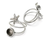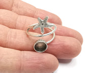 Starfish Wrap Blank Silver Ring Setting Cabochon Mounting Adjustable Ring Base Bezel Antique Silver Plated Brass