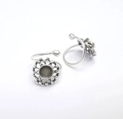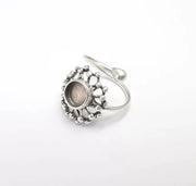 Flower, Sun Ring Setting Blank Cabochon Mounting Adjustable Resin Ring Base Mosaic Ring, Antique Silver Plated Brass (8mm bezel) G29645