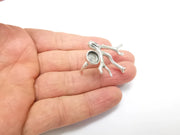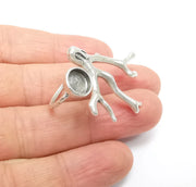 Tree Branch Ring Setting, Cabochon Blank, Resin Bezel, Round Ring Mounting, Epoxy Frame, Adjustable Antique Silver Plated Brass 8mm G35222