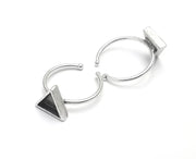 Triangle Silver Ring Setting Blank Cabochon Mounting Adjustable Ring Base Bezel Antique Silver Plated Brass (8mm Blank) G27226