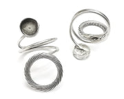 Wrap Swirl Silver Round Ring Blank Base Bezel Settings Cabochon Mountings Adjustable , Antique Silver Plated Brass (8mm blank) G27563