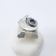 To preserve the antique silver finish, store your ring in a sealed container or zip-lock bag when not in use. Avoid contact with water, perfume, or chemicals. Gently wipe with a soft, dry cloth to maintain its texture and shine.